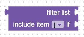 ![]() | This block can be used to filter elements of a list. Note that it doesn't modify the original list but simply returns a new one with filtered elements. |