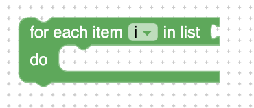 ![]() | Loop over all elements of a list. Note that this block creates an additional variable that can be used to access the currently processed element of the loop. |